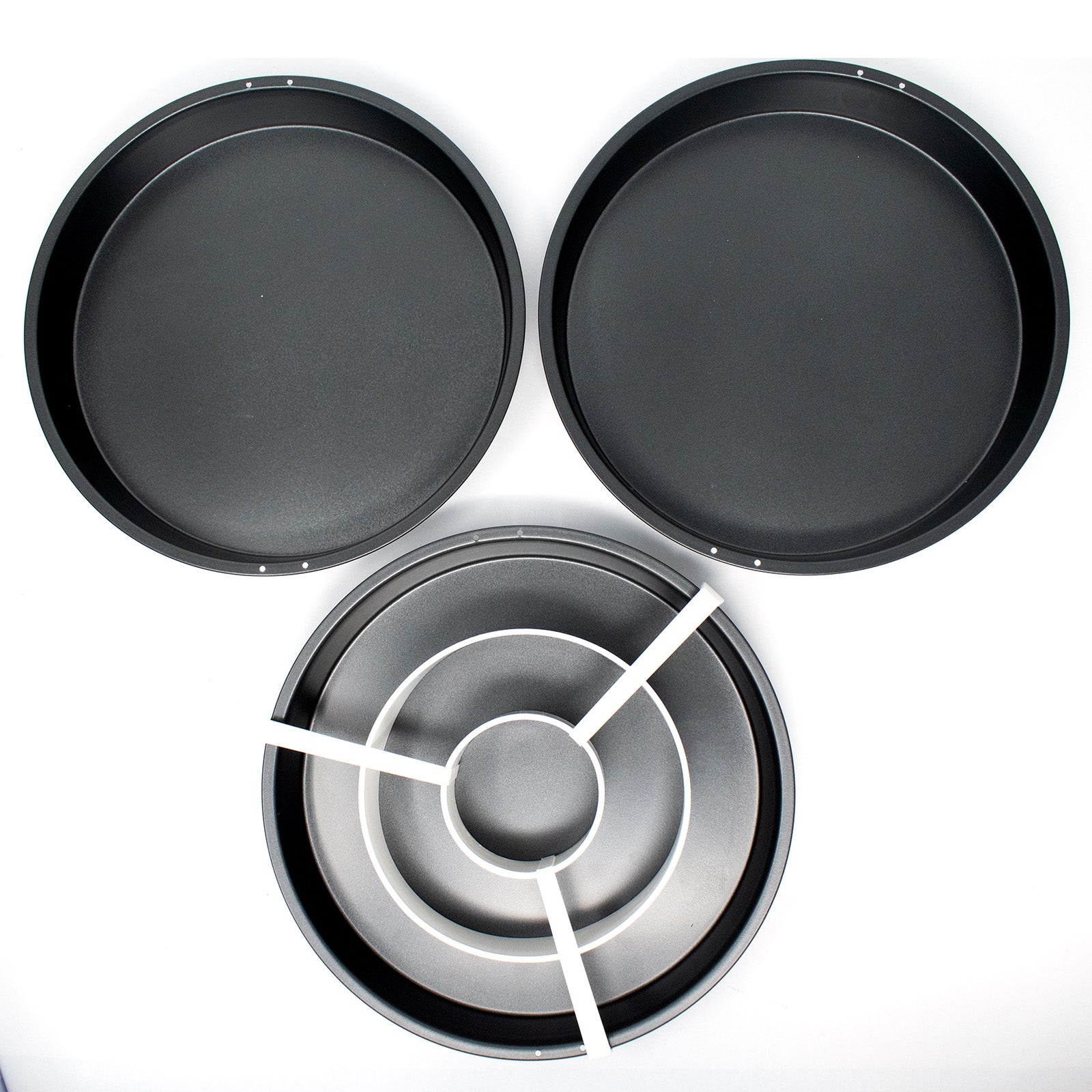 • 4-Piece Set: Includes 3 nonstick pans and 1 plastic batter divider ring