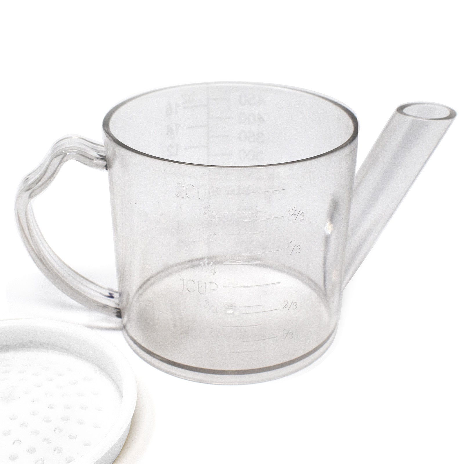 The Norpro Clear 2 Cup Separator/Strainer makes preparing smooth, lean gravies and sauces easy. With a 1.75 cup (400ml) capacity, this tool separates fat from pan juices, stocks, and soups while straining out large herbs and browned bits for a refined finish.