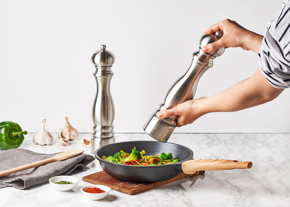 - The pepper mechanism is equipped with a helix-shaped double row of teeth that guide and hold the peppercorns for a perfect grind. It has a patented treatment that protects the steel from corrosion