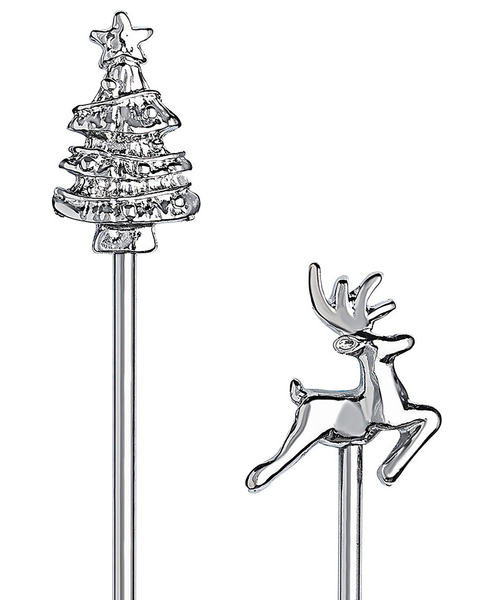 The Prodyne Holiday Stainless Steel Cocktail Picks, Set of 6, add festive cheer and timeless elegance to your holiday entertaining. Crafted from durable stainless steel, each pick features a unique holiday-themed top—perfect for serving martinis, garnishes, olives, or appetizers with a seasonal touch of style.