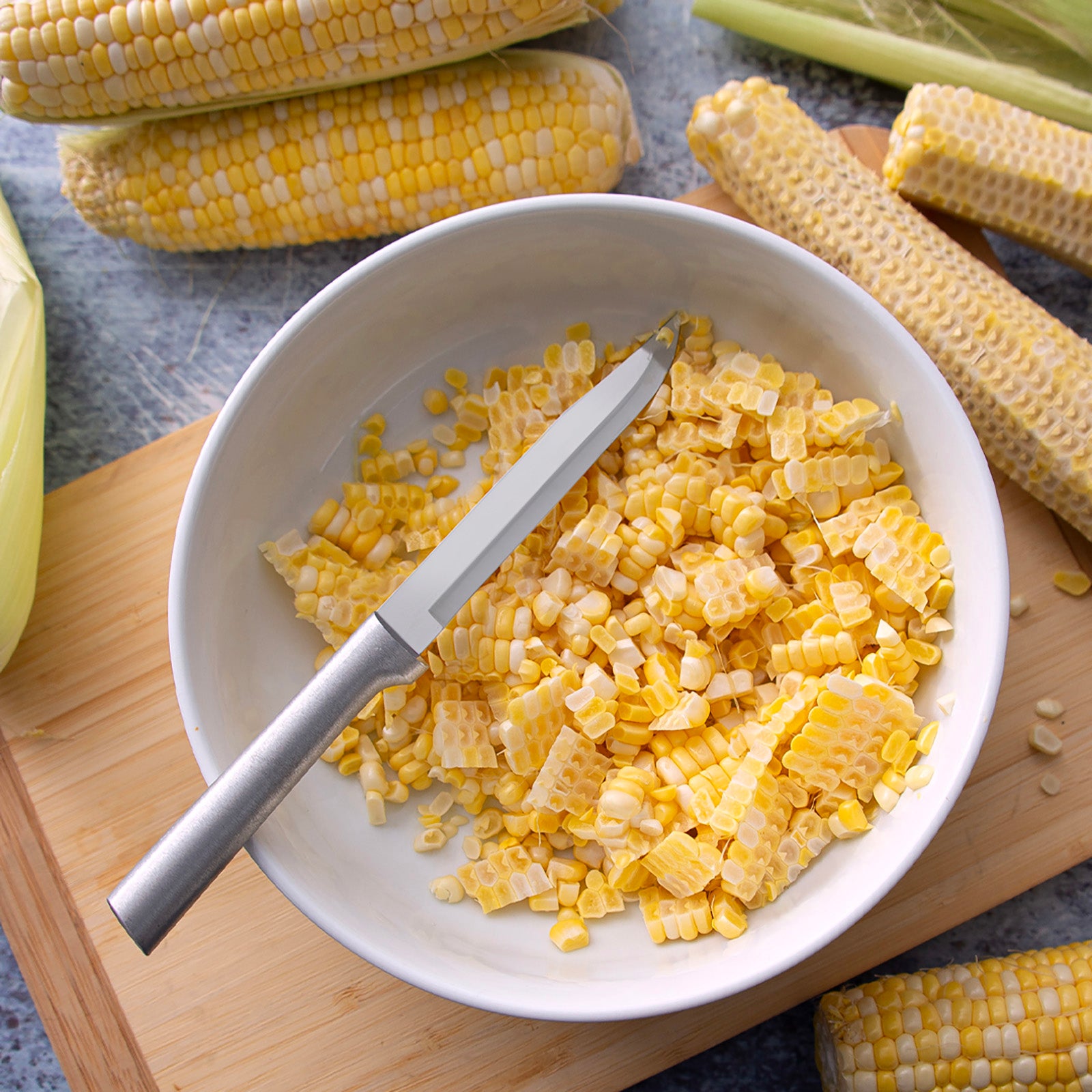 - Includes four 4.8" straight-edge steak knives for smooth, effortless slicing