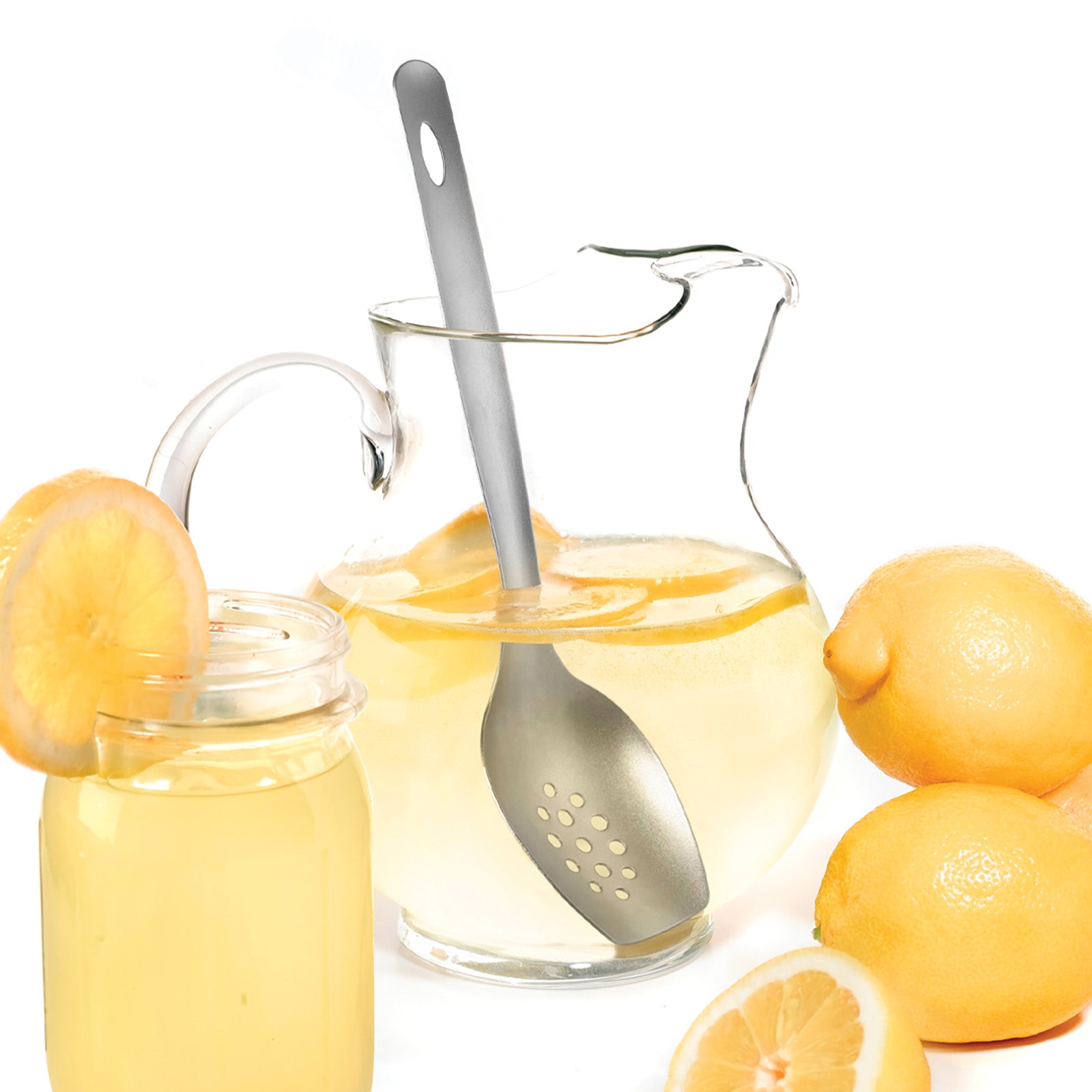 • Slotted stainless steel face: Allows liquids to drain while serving.