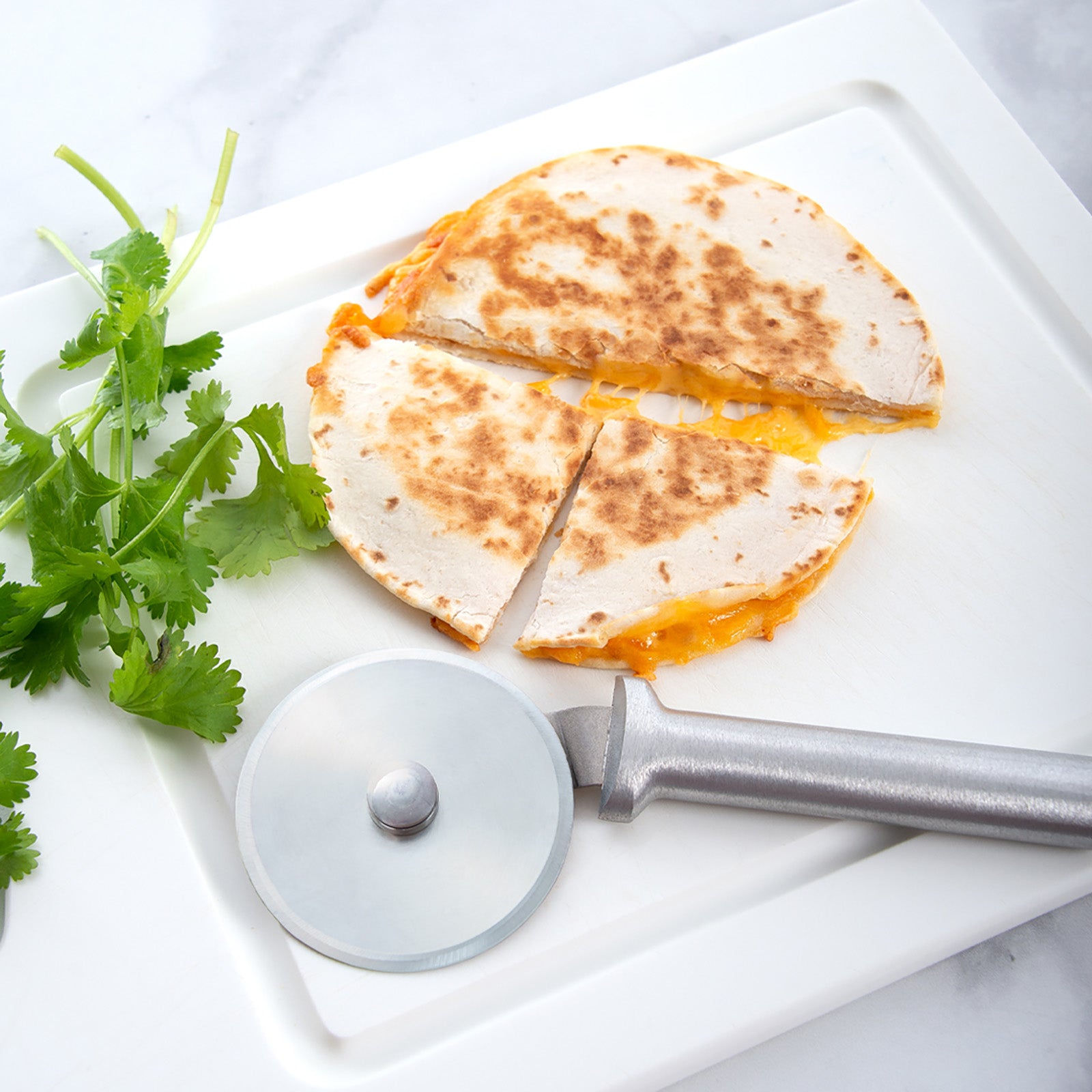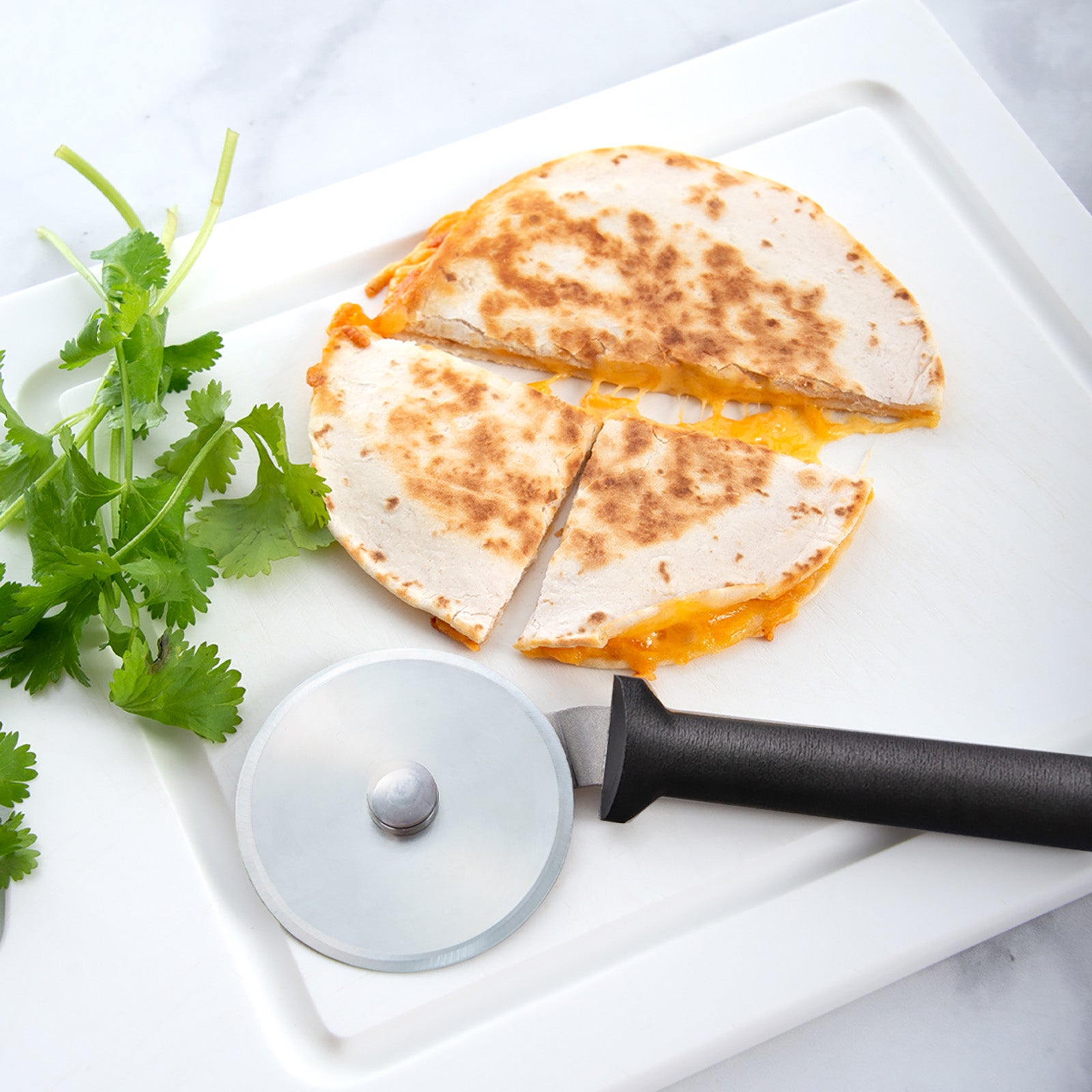 • Effortless rolling action: Cuts through crusts and toppings without dragging.