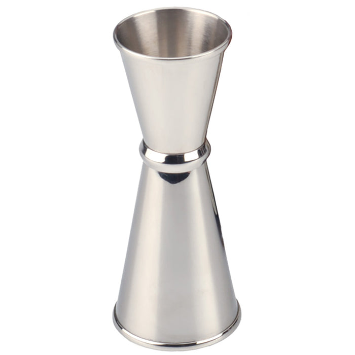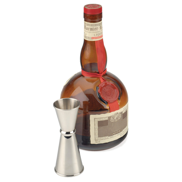 This bar tool accurately measures 1 ounce from one end and 1-1/2 ounces from the other. Constructed from dishwasher safe 18/8 stainless steel. 4-1/2" tall.