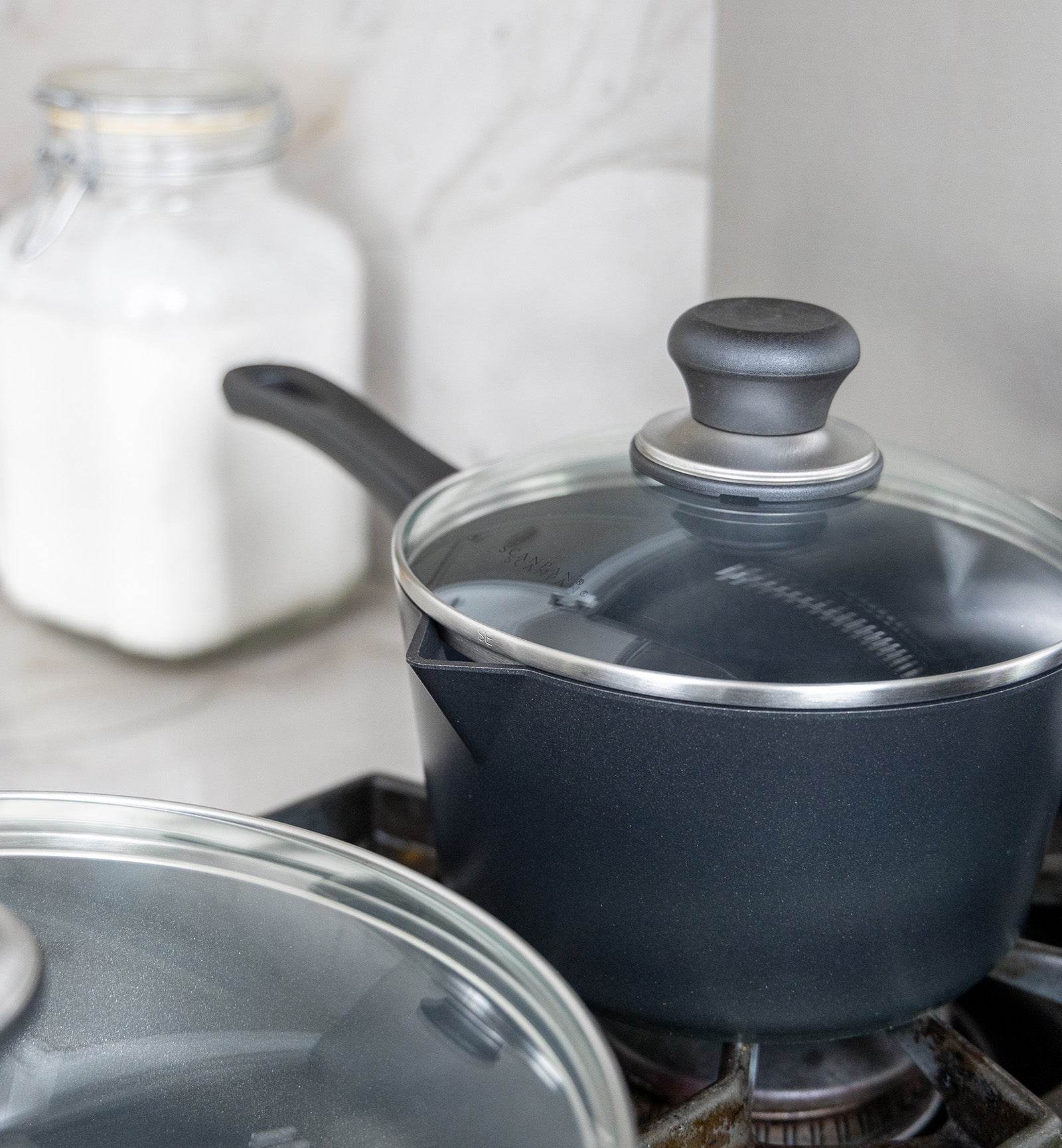 The Scanpan Classic 1 Quart Saucepan with Lid is a compact, high-performance essential ideal for melting butter, warming sauces, reheating leftovers, or preparing single servings. Made in Denmark, this small nonstick saucepan features Scanpan’s signature ceramic-reinforced nonstick surface and squeeze-cast aluminum body for fast, even heat and easy cleanup. Its ergonomic handle stays cool on the stovetop, and the tempered glass lid helps lock in moisture. Oven safe up to 500°F and built to last, it’s the perfect addition to your everyday cookware lineup.