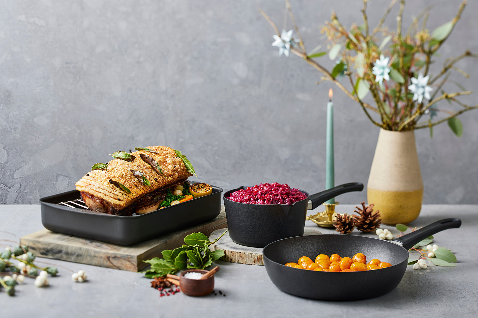 With its generous capacity, this roasting pan is ideal for holiday feasts or weeknight dinners. Oven safe and easy to clean, it transitions seamlessly from oven to table. Crafted in Denmark from recycled aluminum, the Scanpan Classic Roasting Pan blends sustainability with unmatched cooking performance.