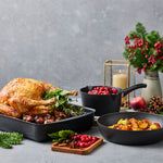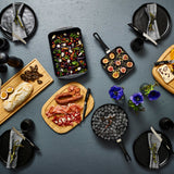 The Scanpan Classic 18" x 12" Stove Top Grill lets you enjoy the flavor of outdoor grilling indoors—year-round. Crafted in Denmark, this generously sized grill pan is made from pressure-cast aluminum with a durable nonstick surface for easy food release and cleanup. Ribbed grilling lines create perfect sear marks on meats, vegetables, and sandwiches, while the spacious 18" x 12" surface fits over two burners for efficient cooking. This nonstick indoor grill pan is oven safe up to 500°F and compatible with gas and electric stovetops (not induction).