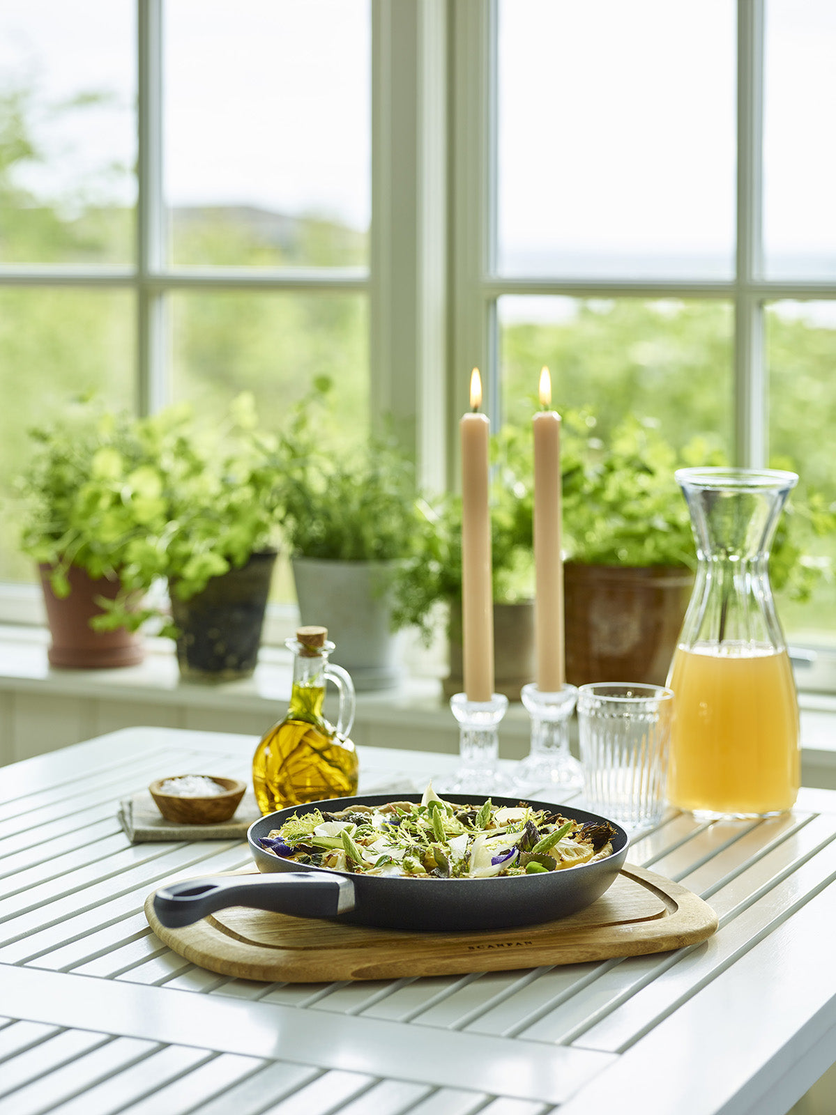 The Scanpan Classic Induction 10.25-Inch Fry Pan is a dependable, high-performance pan designed for everyday cooking. Built in Denmark, it features the Stratanium nonstick surface for easy food release. Its squeeze-cast aluminum base heats evenly and works on all stovetops, including induction. The ergonomic handle stays cool during use, and the pan is oven safe up to 500°F. Ideal for everything from eggs to stir-fries, this pan is as versatile as it is easy to clean.