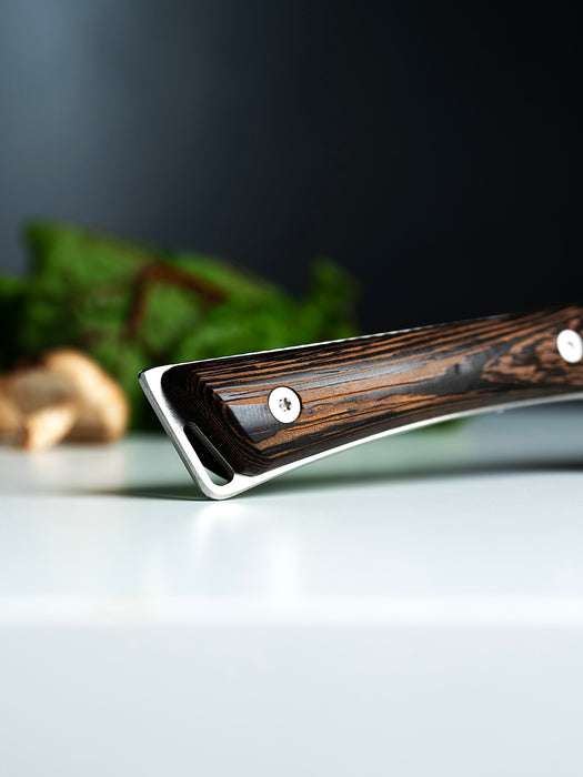 - Tagayasan (or wenge) wood handle; beautiful, extremely hard, and dense, it is known as “iron sword wood”; contoured for secure grip