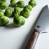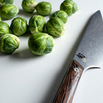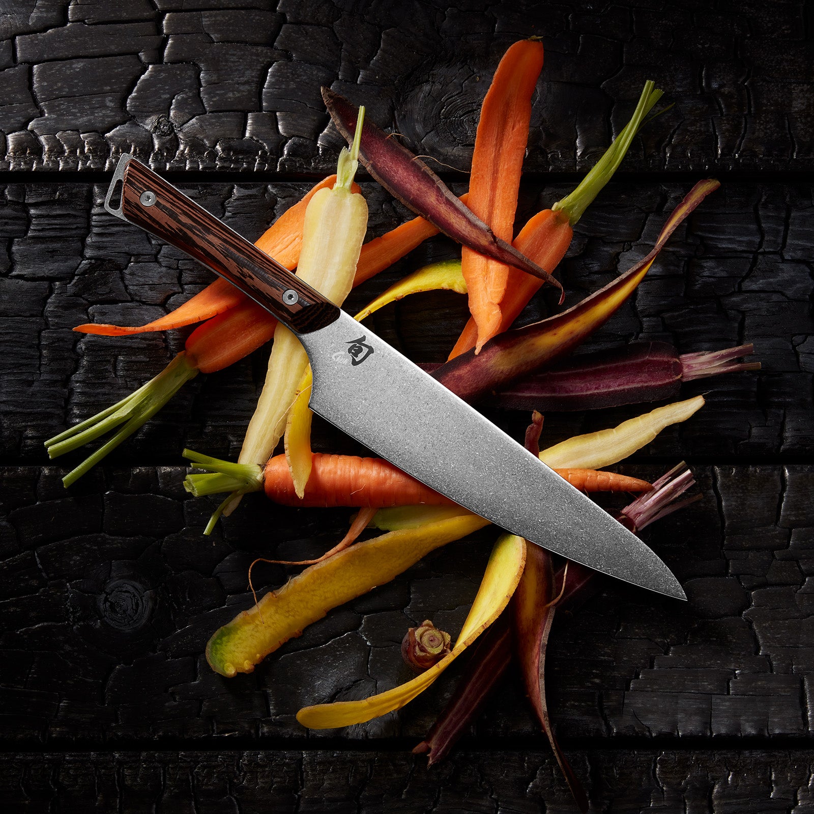 The chef's knife is the one knife no cook can be without. So if you like the looks of Kanso, the Shun Kanso 8-inch Chef's Knife is a must-have. This all-purpose knife is ideal for a wide variety of cutting tasks. The 8-inch length is perfect for preparing fruits, vegetables, proteins, and a wide variety of other foods. The Kanso Chef's Knife is based on its Asian counterpart, the gyuto. It offers a wider heel, a fairly flat profile toward the heel, perfect for push cuts, but we also gave it a little belly from mid-blade toward the tip so that it can be gently "rocked" through fresh herbs or spices to produce a very fine mince. The tagayasan-wood handles are slightly contoured, enabling an easy and comfortable chef's grip while cutting.
