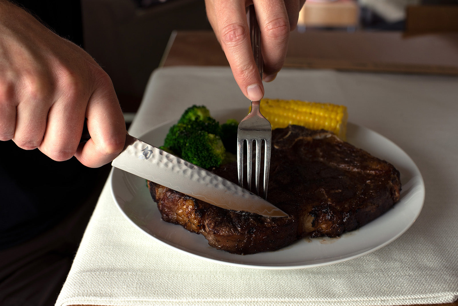 What do knives have to do with it? The truth is that the right steak knife can actually make a good steak taste even better. The key is in keeping more of the flavorful juices inside the steak. A razor-sharp knife, like the Shun Premier Steak Knife, will glide through the meat, cutting fewer of the capillaries in the steak and keeping more of the flavor inside, where it belongs. This set of four beautiful Shun Premier Steak Knives are a perfect five-inch length; long enough to handle even the largest steak, yet short enough to provide excellent cutting control. This four-piece set is ideal for a small dinner party. The Shun Premier Steak Knife Set comes in an elegant box, perfect for gift giving or storage.