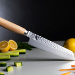 - Hammered TSUCHIME finish helps release food easily when cutting