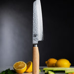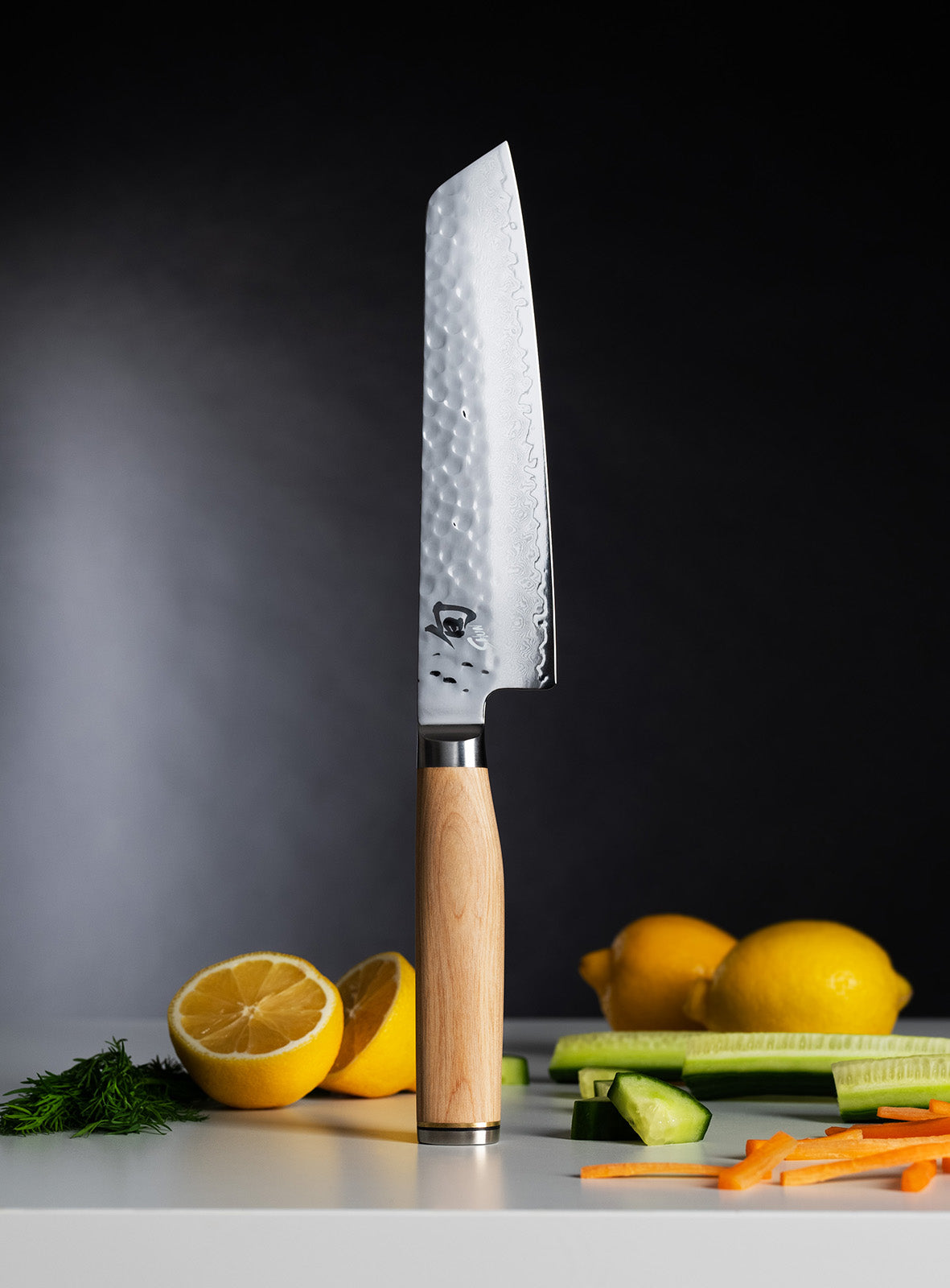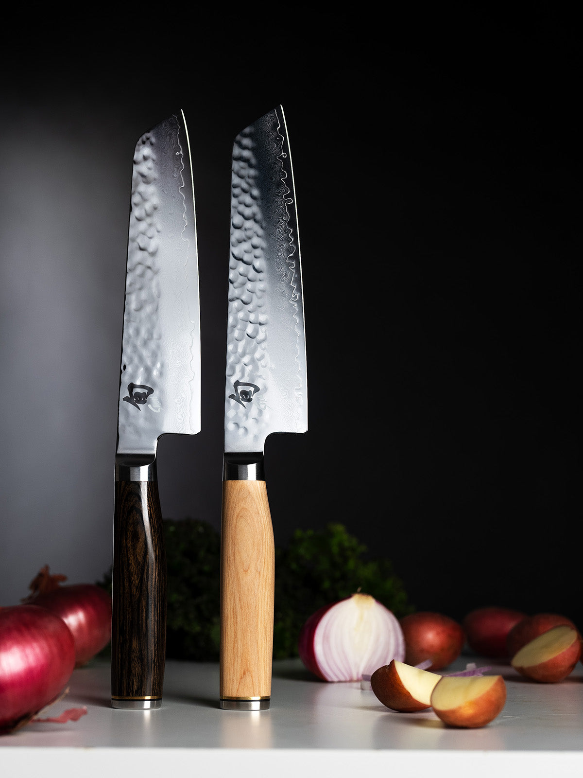 The ultra-versatile Shun Premier Blonde Master Utility combines the nimbleness of a utility knife with the do-it-all capabilities of a chef's knife. The blade is slightly longer and significantly wider, so you can easily accomplish a wide range of food preparation tasks while enjoying the ease of use and agility of a compact knife. Extra width at the heel and a slightly curved belly enables rocking cuts to easily mince herbs and spices. A larger handle gives you a secure, comfortable, and confident grip as you work. The Shun Premier Blonde Master Utility's downturned tip (similar to a kiritsuke) is extra durable. Slice, dice, shred, or portion; you can do it all with this one very beautiful, very functional, kitchen knife.