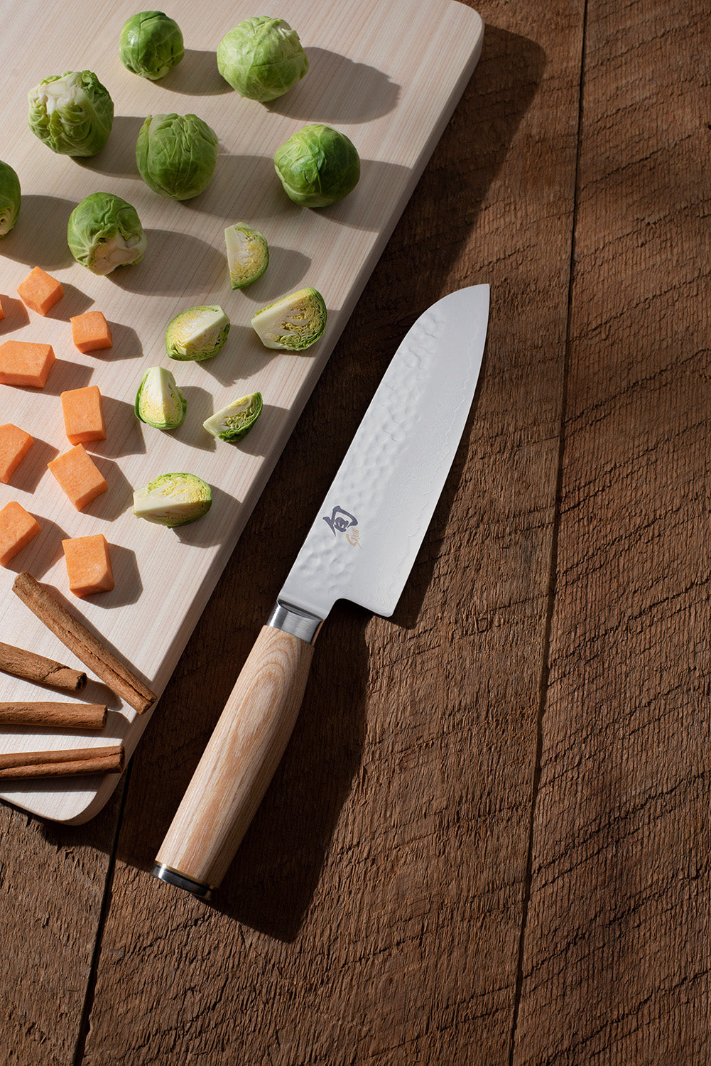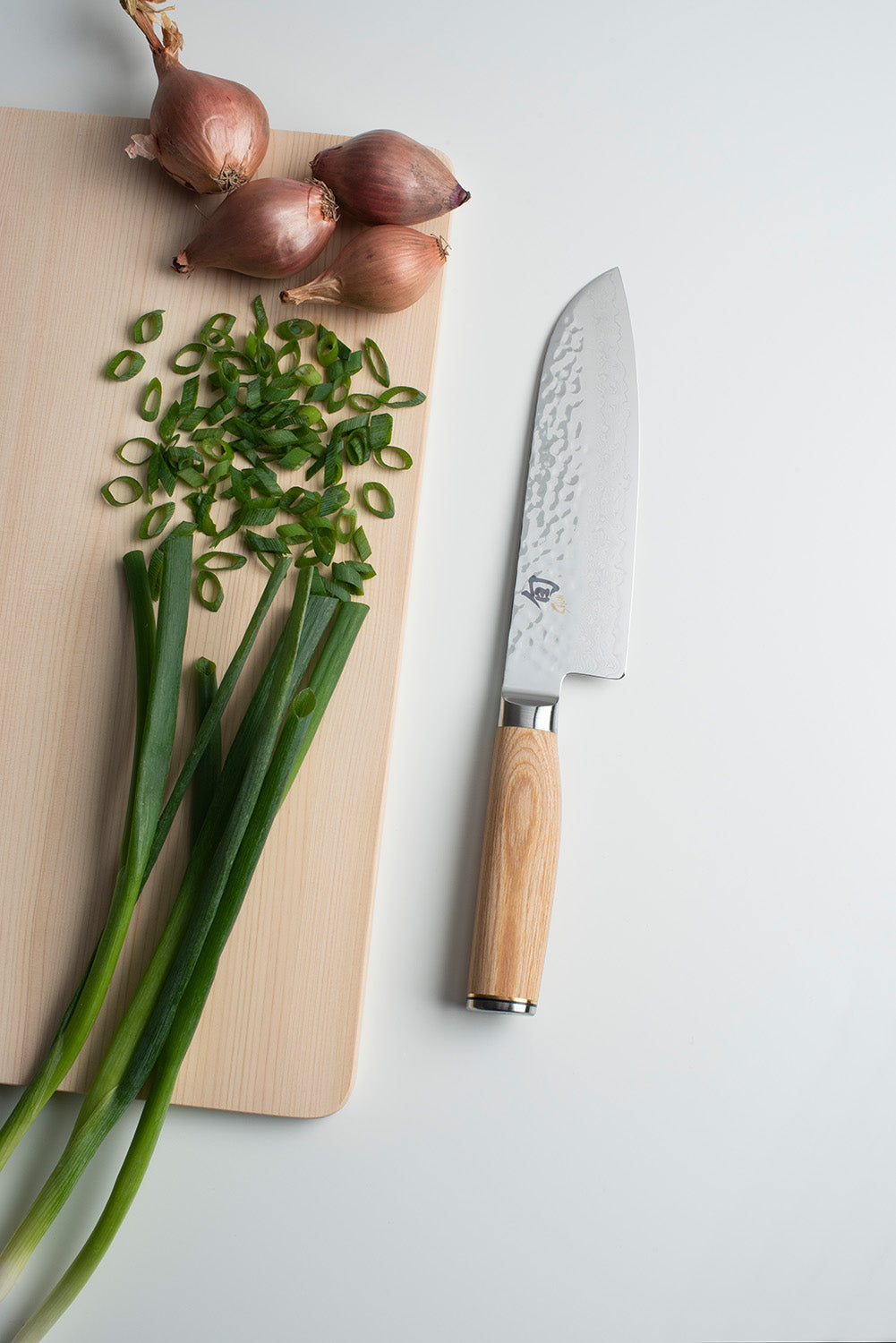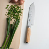 The Shun Premier Blonde 7-in. Santoku is a beautiful, Asian-inspired chef's knife that many cooks today have added to their kitchen favorites. A knife of many talents, a santoku easily handles all the essential kitchen cutting tasks. Slightly shorter than the standard chef's knife, the Shun Premier Blonde Santoku is light, agile, and very easy to maneuver. There's just enough belly curve to enable rocking cuts, which just adds to the Premier Blonde Santoku's versatility. The santoku is as easy to use as a chef's knife and is especially well suited to a down-and-forward cutting motion (push cut).