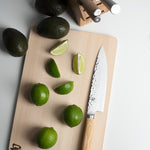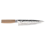 Your chef's knife will be the most-used knife in your kitchen, so you want to find the one that feels like an extension of your arm. The beautiful Shun Premier Blonde 8-in. Chef's Knife just may be the one. This breathtaking knife is lightweight, agile, and offers an extremely comfortable grip. In fact, Shun Premier Blonde's thinner blades makes this chef's knife lighter and less tiring to use than comparable European-style chef's knives. The 8-in. length and razor-sharp edge are perfect for slicing and dicing a full range of foods. The wide blade keeps knuckles off the cutting board and comes in extra handy when transferring cut food from board to pan. With its curved belly, this precision kitchen knife can be gently rocked through fresh herbs or spices to produce a very fine mince.