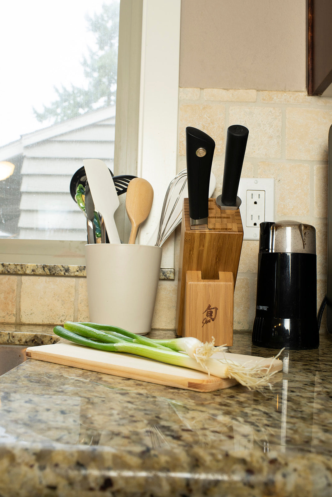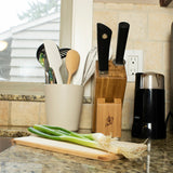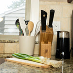 Customize your Sora collection with our 3-Piece Build-a-Block set. Start with the must-have Sora Chef's Knife and the Shun Sora Combination Honing Steel needed for maintaining your edge. The additional slots are perfect for large and medium-sized knives, which you can add whenever it's convenient for you. The slimline bamboo block is durable and bamboo is a renewable resource. You'll also appreciate its easy-care performance. Since bamboo absorbs very little moisture, it doesn't shrink or swell like other hardwoods, making it ideal for kitchen accessories.