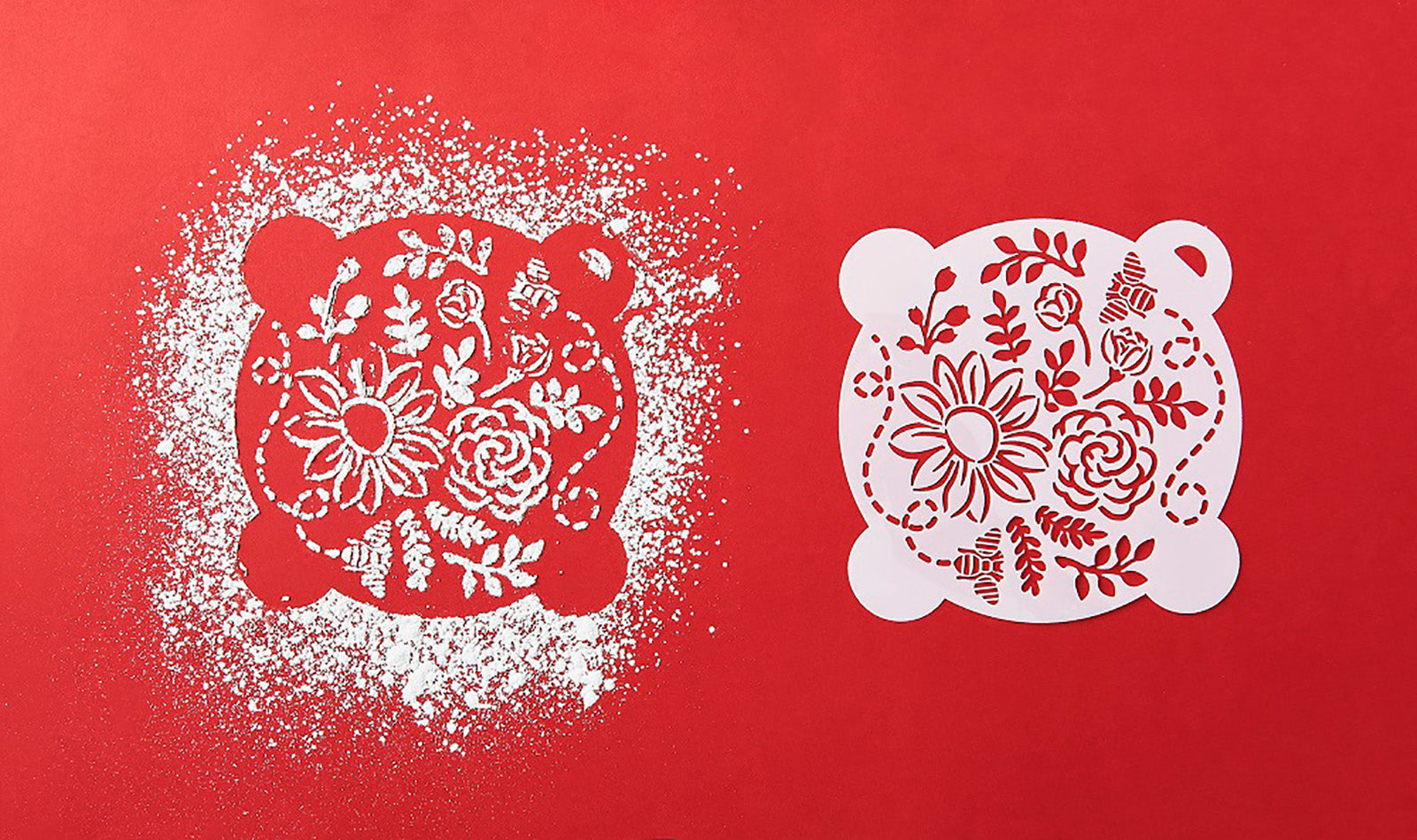 The new baking Stencils Set are perfect for adding the extra touch to your pastry, pie or drink. Gently place the stencil that fits best on top of your dessert or drink and then sprinkle powdered sugar, cinnamon or cocoa and remove the stencil straight up.