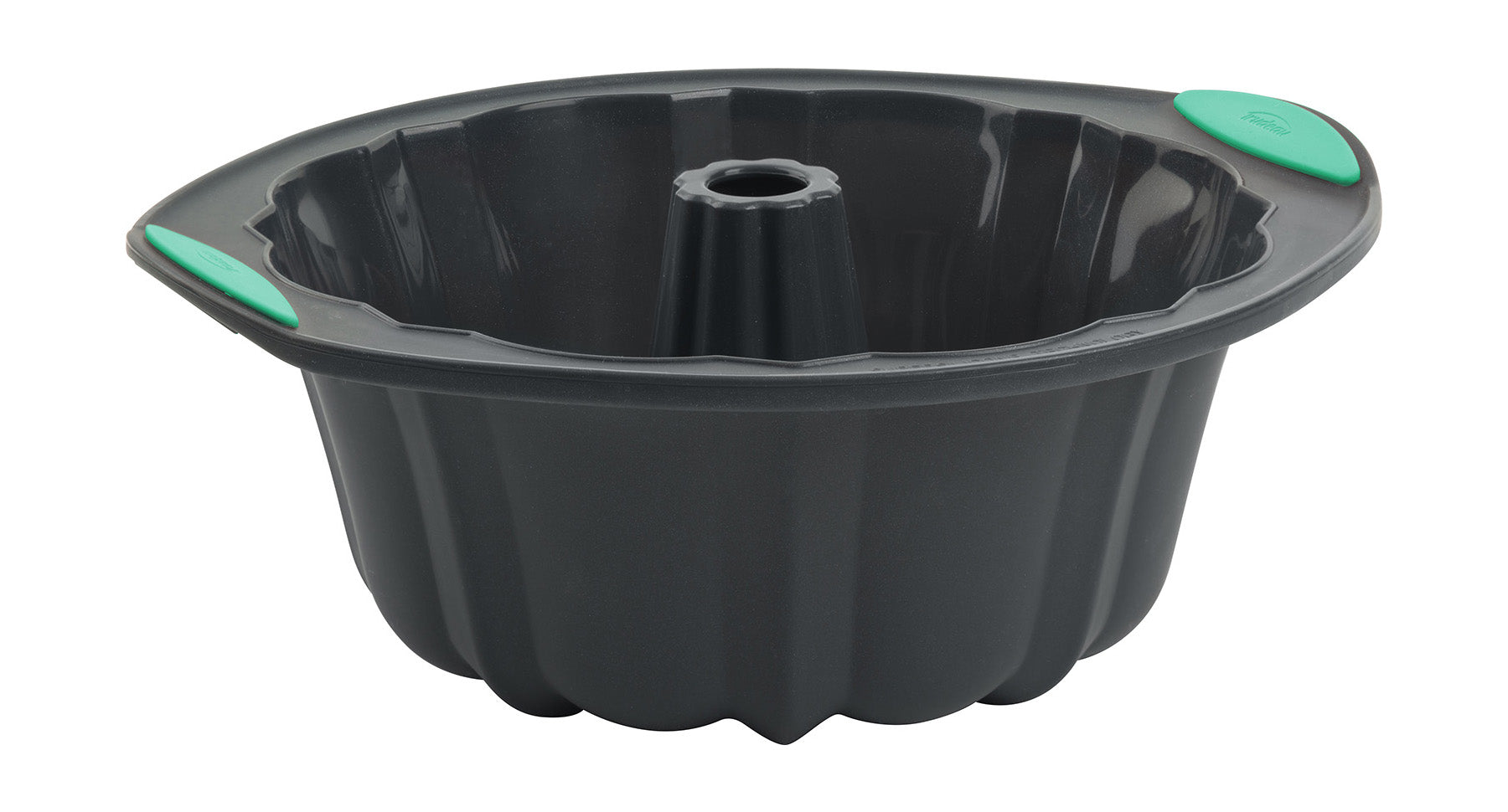 Trudeau Structure Silicone 10 Cup Fluted Cake Pan, Grey/Mint