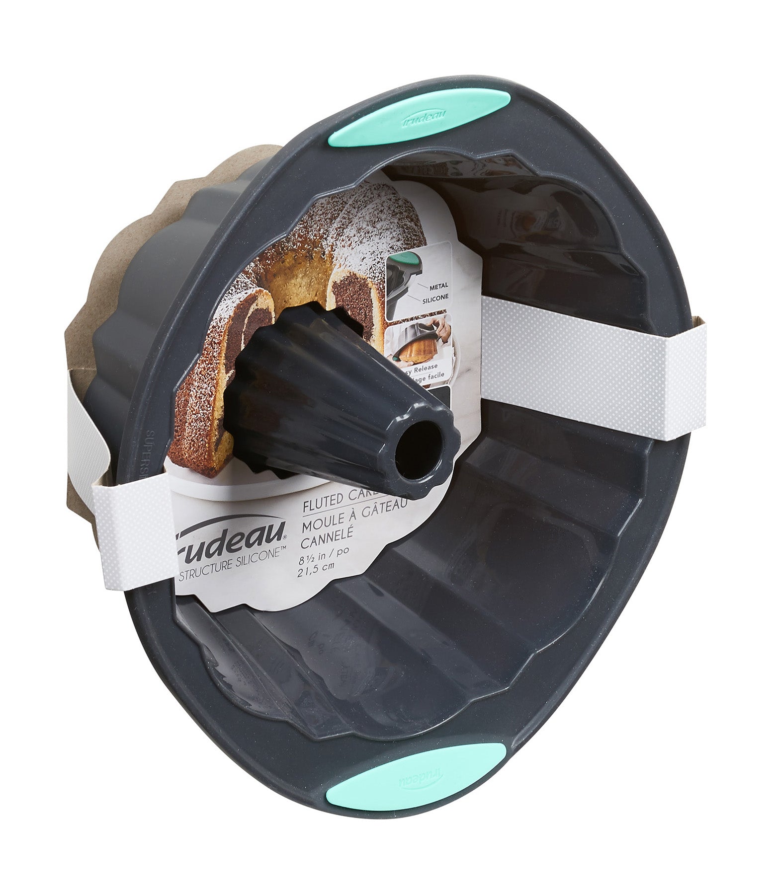 Butter it, bake it, pop it! The Trudeau Structure Silicone 10 Cup Fluted Cake Pan features a built-in steel frame for convenient oven-to-table transport. This pan is a versatile addition to any bakers kitchen. Due to the unique construction of the fluted cake pan, it is dishwasher, oven, freezer, and microwave safe, and is crafted from BPA-free materials for peace of mind. The pan features an 8-1/2 inch diameter.