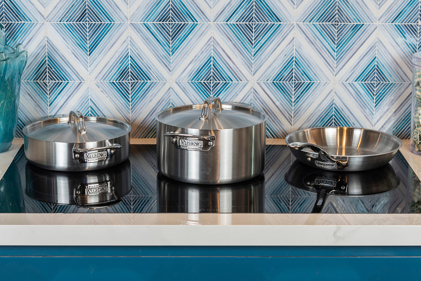 Viking Professional 5-Ply Cookware provides commercial grade quality for in-home use. With an elegant satin finish and five layers of metal, this premium line of cookware is specially handcrafted in the USA. 5-Ply construction maximizes heat transfer and reduces energy usage, features that enable Viking cookware to deliver superior cooking performance. Each layer of metal is created to provide durability and efficiency. The exterior layer is a magnetic stainless steel that makes the cookware suitable for induction stovetops. The next layer of aluminum alloy bonds to the middle layer, which is pure 3004 aluminum. The fourth layer is an aluminum alloy bonded to the interior 18/10 high-grade stainless steel. Together, these five layers work in unison to transfer heat quickly and evenly while using less energy to achieve desired cooking temperatures.